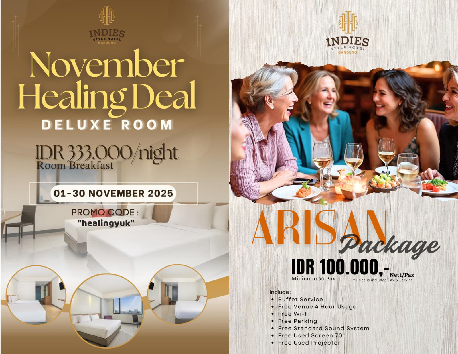 Agendakan acara pertemuan, lamaran ataupun pernikahan di Indies bandung. Kami menyediakan ruangan yang dapat menampung acara Anda mulai dari 10 orang sampai dengan 150 orang.